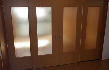 間仕切の木製の建具をガラス入りに交換。明るくなりました。